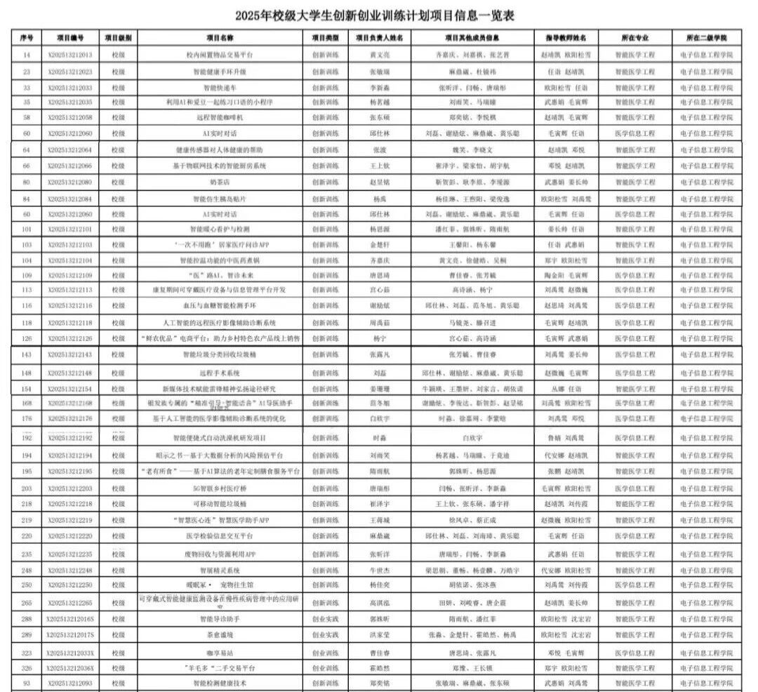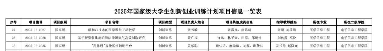 近日,从《教育部高等教育司关于公布2025年国家级大学生创新训练计划项目名单和结题验收结果的通知》(教高司函〔2025〕10号)获悉,我院共有47项大学生创新创业训练计划项目获批。其中,国家级项目3项,省级项目5项,校级项目39项。获批项目总数创历史新高。