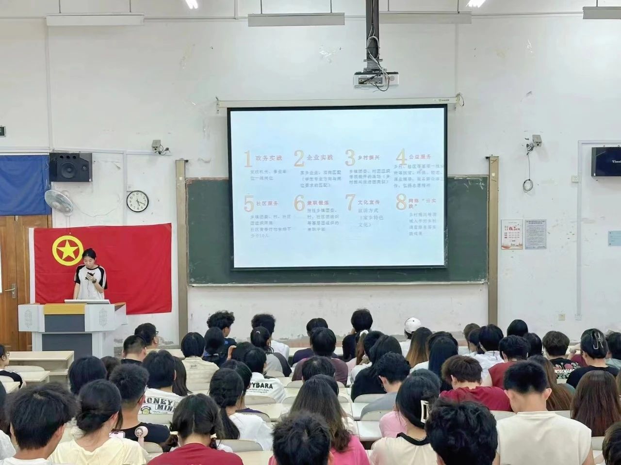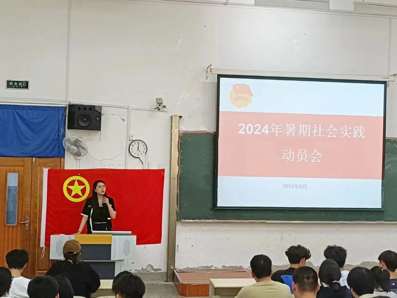 为深入学习贯彻习近平新时代中国特色社会主义思想,落实习近平总书记“提高自己、干出实事、做出实效”的期望,切实引导和帮助广大青年学生“受教育、长才干、作贡献”,践行培育有理想、敢担当、能吃苦、肯奋斗的新时代好青年,电子信息工程学院团总支积极开展暑假社会实践工作。2024年6月28日,我院团总支在第一教学楼第一阶梯教室召开2024年暑期社会实践动员会。大会由团总支副书记刘佳荣主持,在校年级学生参加。