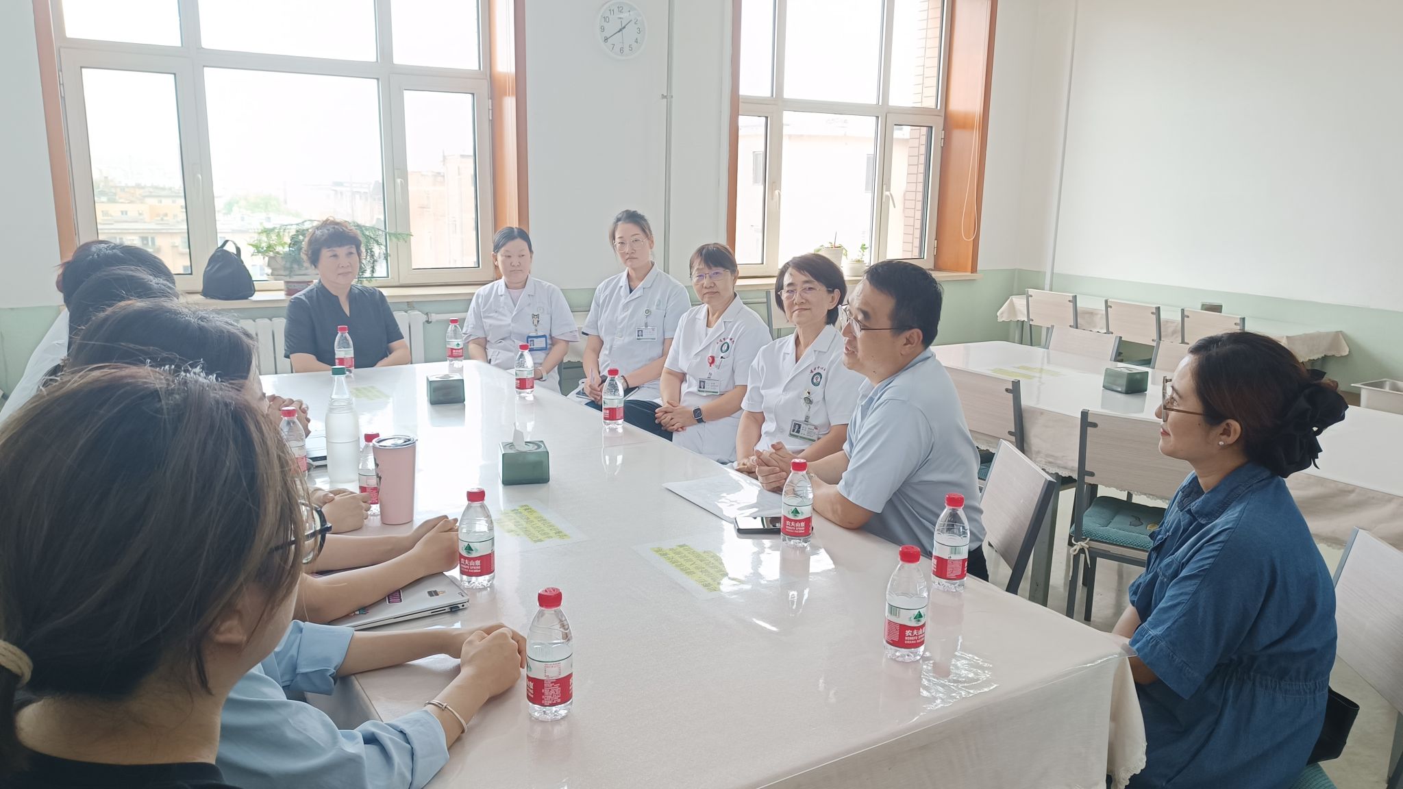 在大连市中心医院,双方围绕健康服务与管理专业实习标准、岗位能力要求展开深入交流。院方结合工作实践,提出“理论扎实、技能过硬、人文突出”的实习人才标准;罗院长与刘颖主任介绍了专业课程体系与实践教学规划,双方就实习大纲修订、毕业论文指导和带教机制完善等方面达成共识。老师们还亲切慰问了在岗实习学生,详细了解其工作生活状态,鼓励学生珍惜实践机会,将专业知识转化为服务能力。