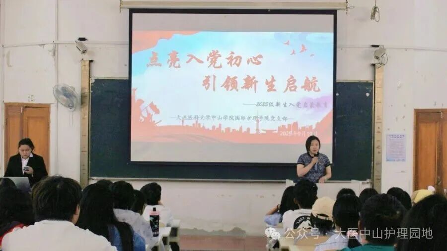 为引导2025级新生树立正确入党动机,深化对党的认识,深刻践行“为人民服务”的根本宗旨,国际护理学院于2025年9月19日11:40在实验楼第七阶梯召开2025级新生入党启蒙教育大会,本次会议由国际护理学院副院长兼党支部书记陈丽娜老师主持,2025级全体学生参与,为新生开启了一堂兼具思想深度与专业温度的启蒙课程。