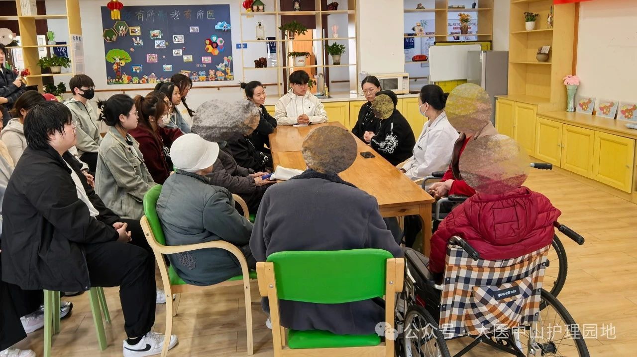 在故事会活动结束后,我院青年化身温暖的陪伴者,与养护院老人们围坐交谈,关切询问生活近况。在轻松的氛围中,拼图游戏的欢声笑语、钓鱼互动的专注身影、共唱经典老歌的悠扬旋律交织成温馨画卷,老人们舒展的笑颜、上扬的语调,生动诠释了“老有所为、老有所乐”的幸福真谛,也让青年志愿者们感受到了陪伴的力量和生命的温度。