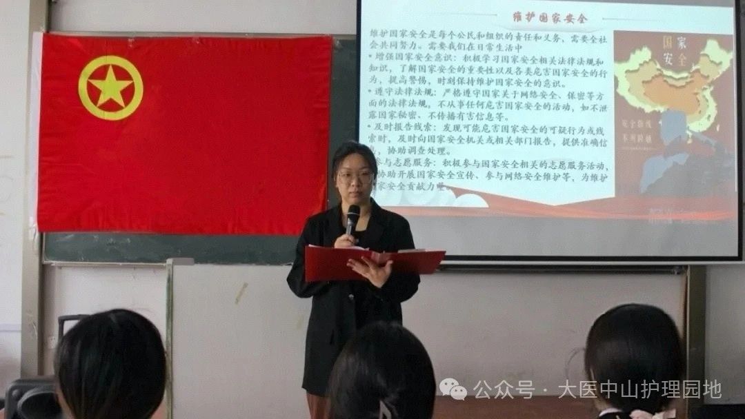 2025年是习近平总书记提出总体国家安全观11周年,为深入学习贯彻党的二十届三中全会精神,筑牢国家安全防线,在第十个全民国家安全教育日来临之际,国际护理学院团总支积极响应时代号召,于2025年4月14日在第二阶梯教室开展“守护国家安全,筑牢网络红线”主题团日活动,本次活动由国际护理学院团总支书记李媛冰老师主持。