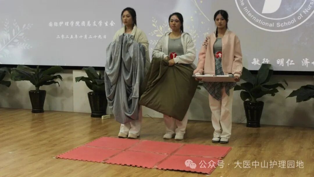那些共同构思的寝徽设计、协作完成的内务整理、默契配合的才艺表演,早已超越比赛本身,成为2025级国际护理学院学子青春记忆里的温暖注脚。这场以“雅室”为载体的盛会,化作了室友间的互助、对细节的追求,更融入了我院学子对“严谨做事、温暖待人”职业素养的初体验。未来,愿这份在大赛中凝聚的情谊与精神持续发酵,让每一间寝室都成为涵养品格、锤炼本领的“小课堂”,让国际护理学院学子们带着这份成长与收获,在守护健康、服务社会的道路上稳步前行,以青春之我续写属于新时代青年的担当篇章。