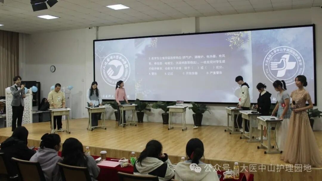 第二环节“手册细则大PK”,聚焦理论知识。6组寝室各派1名代表,围绕《beat365唯一官方网站学生手册》及党史知识展开比拼。必答题环节,选手们沉着思考、快速作答,展现扎实的知识储备;抢答题环节,大家紧盯抢答器,反应迅速,现场节奏紧张又激烈,台下观众也忍不住为选手们捏紧拳头、轻声助威。