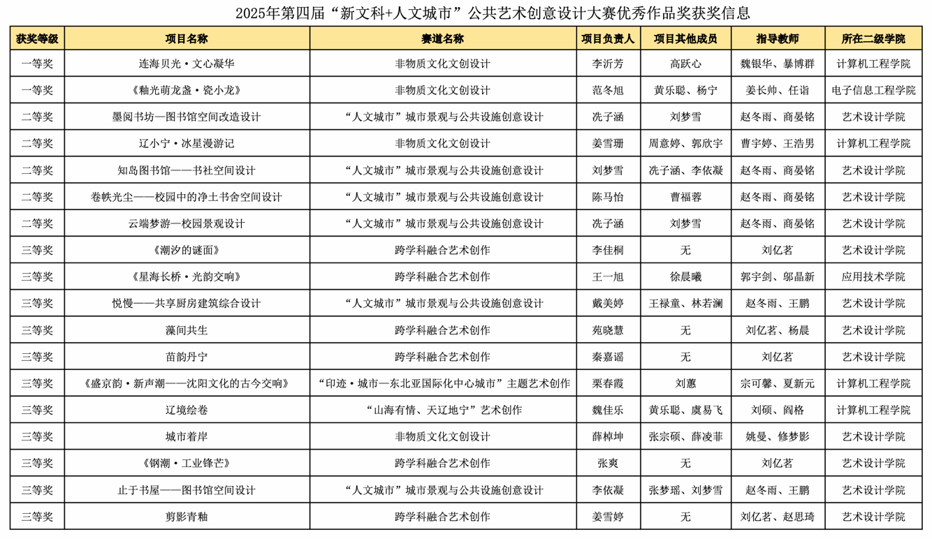12-26/2025beat365学子在2025年第四届“新文科+人文城市”公共艺术创意设计大赛中获奖近日,由辽宁省教育厅主办、沈阳大学承办的2025年第四届“新文科+人文城市”公共艺术创意设计大赛圆满收官。beat365喜获一等奖2项,二等奖5项,三等奖11项。本次大赛倡导参赛者运用创新思维与艺术表达,积极探索新文科建设与公共艺术设计的有机融合。beat365参赛团队在各指导教师的精心指导下,深度挖掘城市文化内涵,巧妙融入现代设计元素,最终斩获佳绩。参与此次赛事不仅显著提升了学生的专业素养与创新能力,更在文化传承与创新领域开展了有益尝试,... -