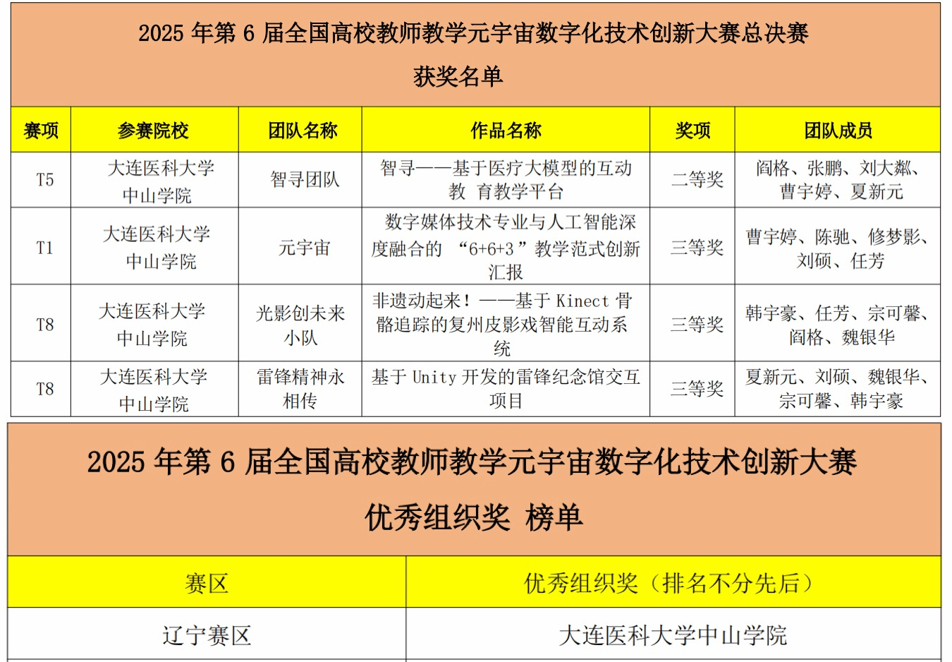 11-21/2025beat365教师在第6届全国高校教师教学元宇宙数字化技术创新大赛中喜获佳绩近日,2025第6届全国高校教师教学元宇宙数字化技术创新大赛总决赛圆满收官。beat365教师凭借深厚教学功底与新颖数智化融合方案崭露头角,一举斩获4项荣誉——二等奖1项、三等奖3项,学校更因出色的赛事组织与统筹支持,获评“优秀组织奖”,全方位彰显了beat365在元宇宙、人工智能等数字化技术与教育教学深度融合领域的探索成效与育人硬实力。学校高度重视此次赛事,参赛教师紧扣大赛主题,立足医学教育特色与专业教学实际,深耕数字化教学创新。... -