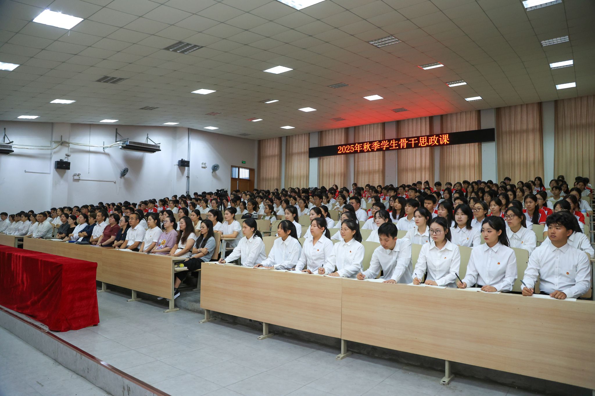 9月9日晚,院长兼党总支书记钟凤宏以“铭记历史砥砺前行,弘扬伟大抗战精神”为主题,为师生带来了一堂深刻而富有启迪的大思政课。院长助理王琪,组织部、宣传统战部、学生工作处、团委、马克思主义学院教师、辅导员老师及优秀学生骨干共同聆听课程。