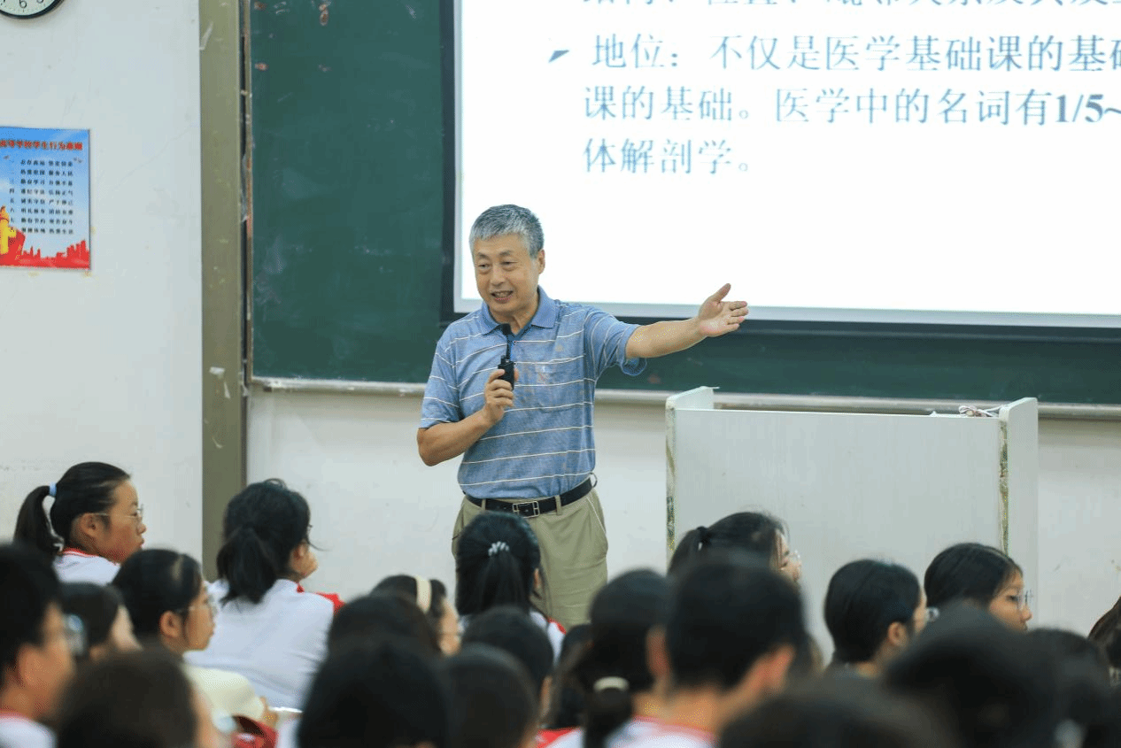 校领导与同学们一同坐在教室里,认真聆听了刘绍壮教授主讲的《人体系统解剖学》。课堂上,刘老师以清晰逻辑梳理知识点,将抽象理论转化为生动易懂的讲解。新生们专注跟随老师的思路,不时在笔记本上记录,遇到疑问主动举手提问,师生互动坦诚而热烈,课堂洋溢着求知热情与青春活力。