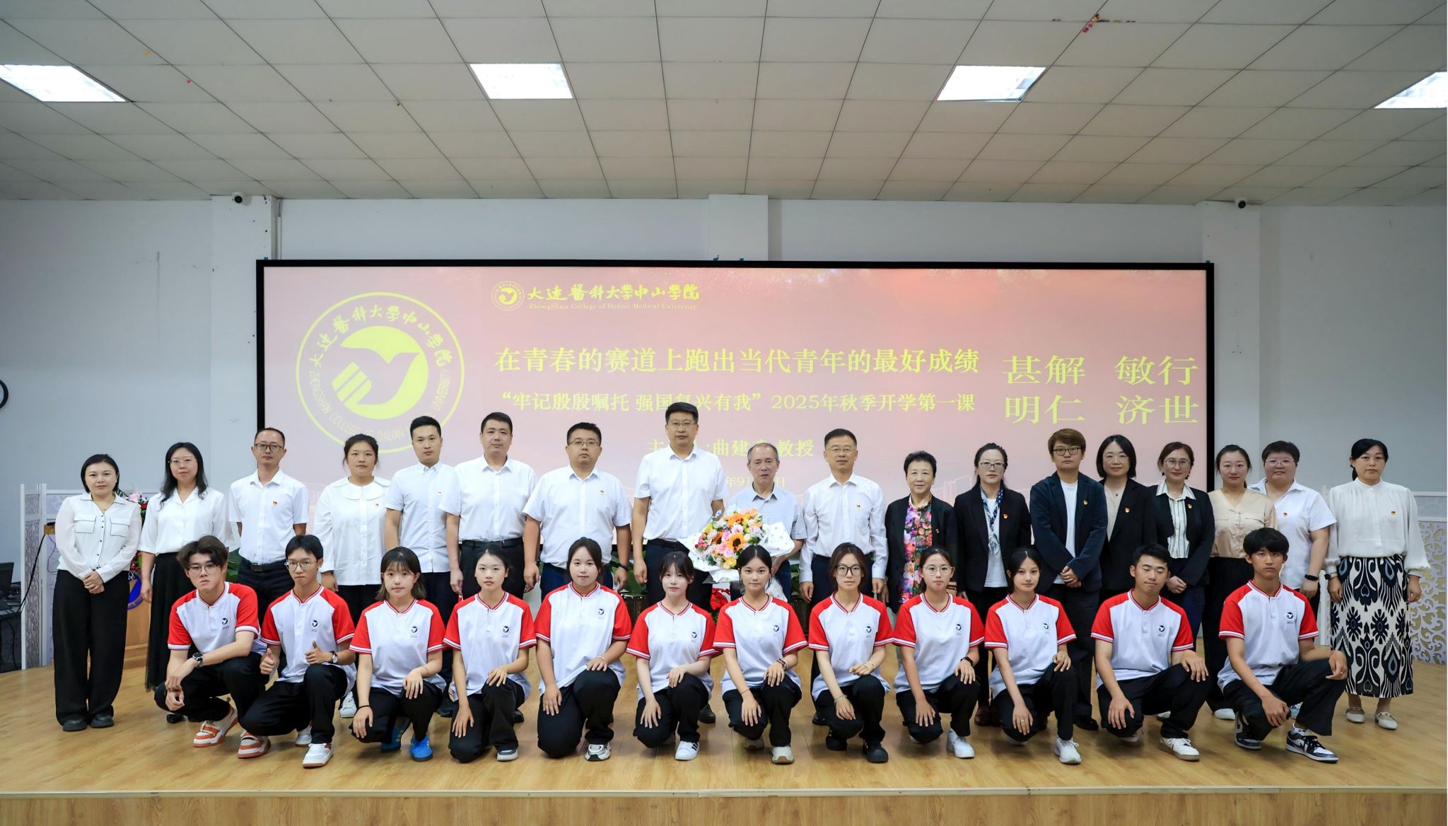 报告会现场,曲建武教授站立讲授近两小时,以深厚的理论素养、鲜活的实践案例和扎根一线的育人经历为大医中山学子带来一堂生动、深刻的思想政治课,他围绕“在青春的赛道上跑出当代青年的最好成绩”这一主题,从十个方面诠释了当代青年人的使命与担当,以深耕教坛四十余载的初心与坚守,勉励青年学子要坚定理想信念、培养家国情怀、塑造意志品质,以真才实学服务人民,以创新创业服务国家,在实现中华民族伟大复兴的时代洪流中踔厉奋发、勇毅前行。