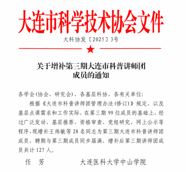 图 2任芳老师入选大连市科普讲师团