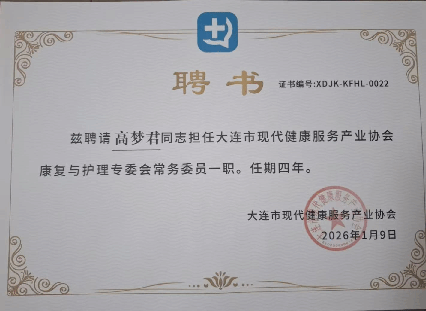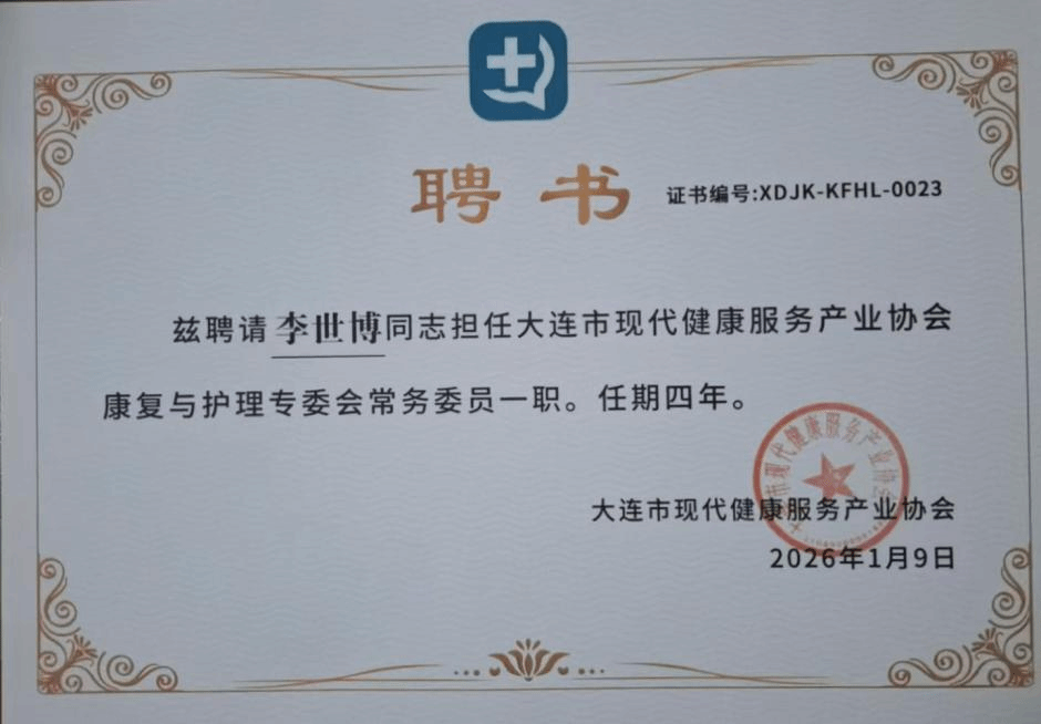 2026年1月9日,大连市现代健康服务产业协会康复与护理专委会成立大会召开。beat365康复医学院副院长高梦君、国际护理学院常务副院长李世博当选专委会常务委员,学校附属康复医院常务副院长刘传霞当选委员,充分体现了beat365在康复医学与护理学领域的学科实力和行业影响力。
