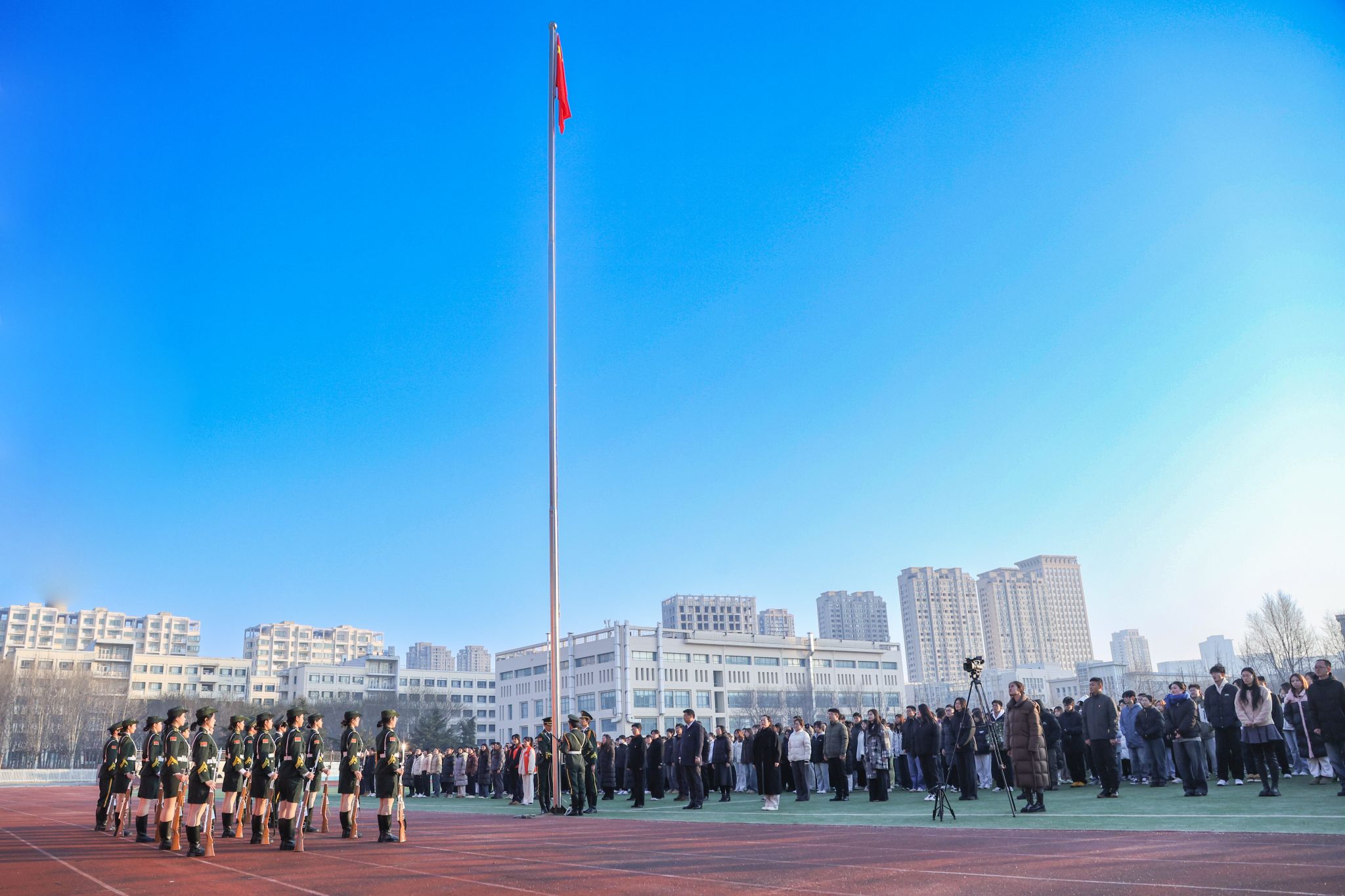 在庄严的国歌声中,五星红旗冉冉升起,全体师生行注目礼。这一时刻庄严而神圣,爱国之情在每个人心中激荡,激励着大家以崭新的姿态开启新征程。