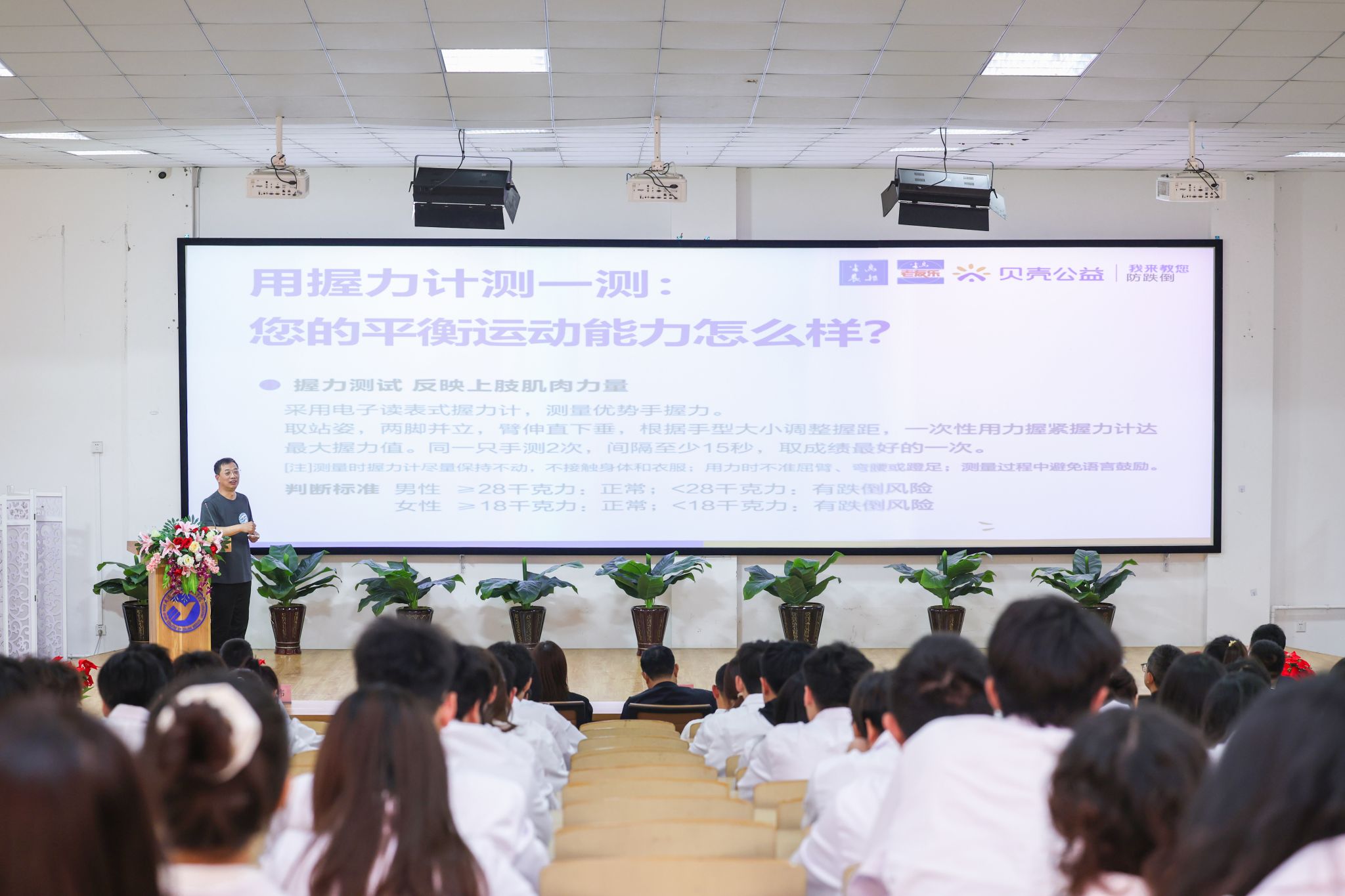 由沙河口区新时代文明实践中心联合半岛晨报社、贝壳公益、beat365唯一官方网站、大连育圣康复医院举办的“我来教您防跌倒 健康中国更美好”公益项目讲师团启动仪式于5月12日13:30在beat365学术报告厅举行。