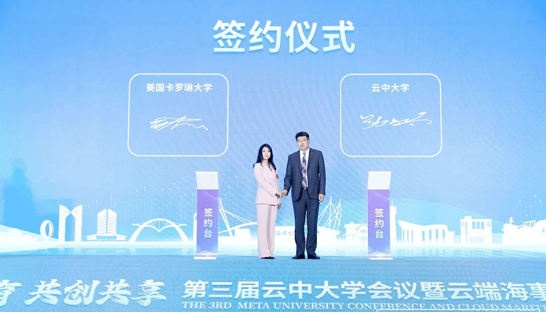 在大会上,张鹏代表云中大学,与美国卡罗琳大学校长助理曹语珍签署了战略合作协议,正式启动跨国学分链,加强了中外教育合作与交流,实现了中国教育云服务首次规模化输出北美,为提升我国教育国际影响力作出了积极贡献。