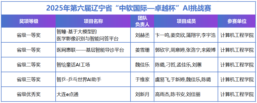 近日,由辽宁省教育厅主办,渤海大学承办的2025年第六届辽宁省“中软国际—卓越杯”AI挑战大赛圆满落幕。beat365学生在此次大赛中表现出色,荣获省级一等奖2项、二等奖1项、三等奖1项、优秀奖1项。此次比赛充分展示了beat365学子在人工智能领域的专业技能和创新实践能力。