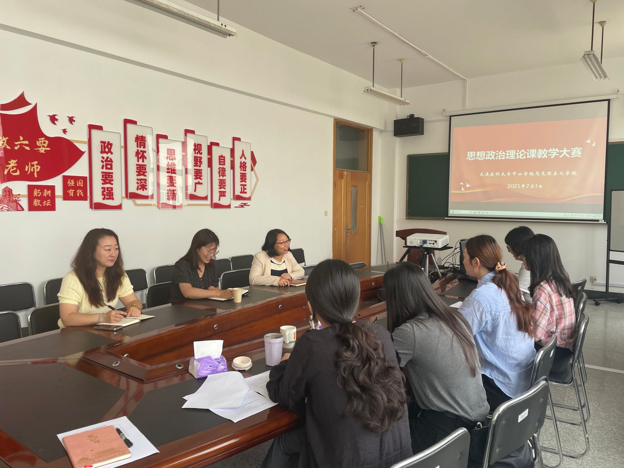 备赛期间,马克思主义学院多措并举,全力提升参赛教师的综合能力。一方面,邀请大连理工大学王冠文教授担任指导专家,为参赛教师提供了极具针对性和实用性的指导与建议;另一方面,学院还邀请校内专家对参赛教师开展系统化、专业化的指导。通过组织参赛教师反复研讨、潜心演练,帮助他们精心打磨教学课件、优化教学设计、熟悉赛事流程。