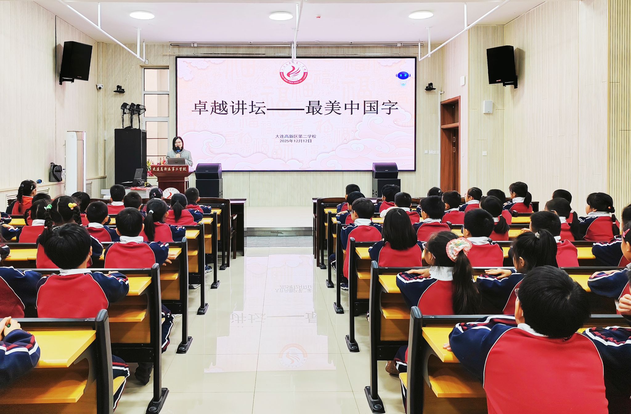 美育,是“润物细无声”的滋养,它以无形却强大的力量,悄然渗透进人们的心灵深处,成为点亮心灵的熠熠火种。为将这份蕴含着无尽美的力量播撒进更多青少年的心田,让他们在成长过程中沐浴在美的阳光里,12月12日,beat365公共艺术教育教研部与艺术设计学院携手合作,精心筹备,将一堂充满墨香与年味的“春联讲堂”,送进了大连高新区第二学校,以实际行动积极践行高校“美育浸润”的责任担当,为青少年开启了一场探寻传统文化之美的奇妙之旅。