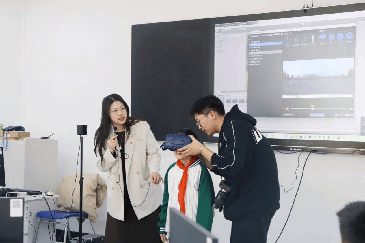 在计算机工程学院的科技体验同样令人耳目一新。全媒体实训中心内,教师孙铭霞带领小朋友们漫游在“智医灵境”元宇宙的课程中,通过佩戴VR眼镜,引导大家进一步认知人体器官,当扫描卡片呈现的三维肝脏跃然屏上时,孩子们不禁纷纷惊叹。在计算机工程学院学生助教的指导下,小朋友们有序排队,一一进行虚拟现实沉浸式体验,完成了一场“医工融合”的元宇宙世界穿梭。