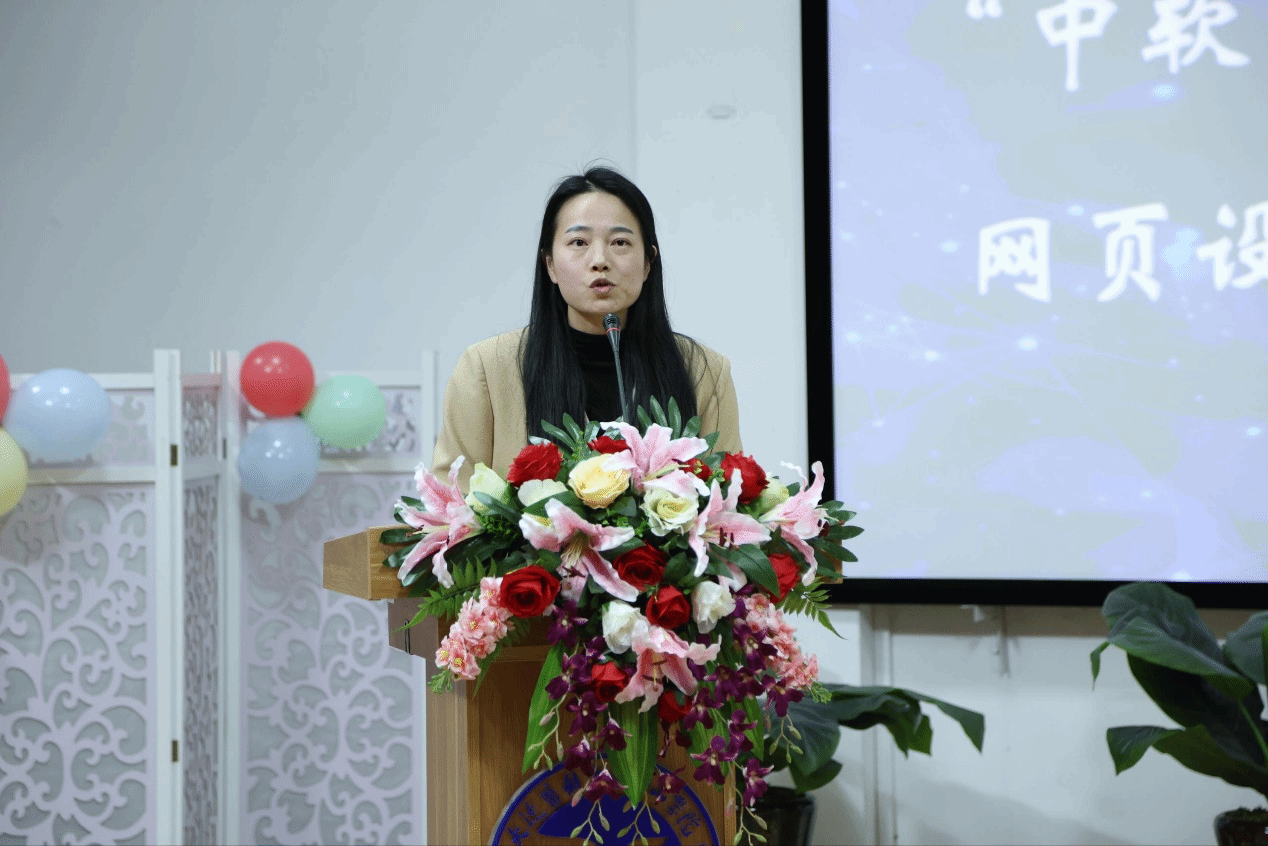 颁奖典礼后,评委代表秦晓东老师发表了全面而深刻的总结发言。她高度评价了参赛作品的创新性与完成度,指出本届的作品质量上乘,展现出学生们在专业技能和创新思维方面的巨大潜力。同时,秦晓东老师从专业角度出发,提出了许多建设性的改进意见,为同学们未来在网页设计领域的学习和提升指明了清晰的方向。