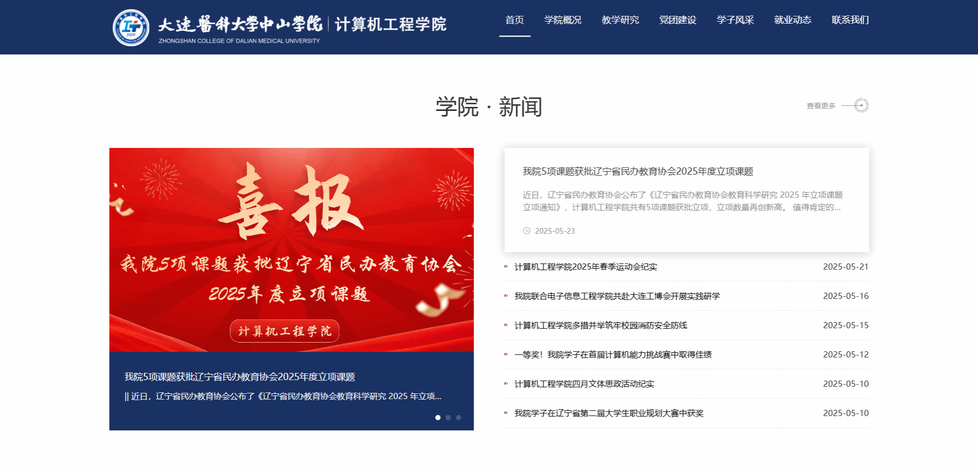学院新闻:发布学院的最新动态,涵盖学术活动、教学成果、师生风采、学科竞赛及科研项目进展等,确保重要信息高效传达。