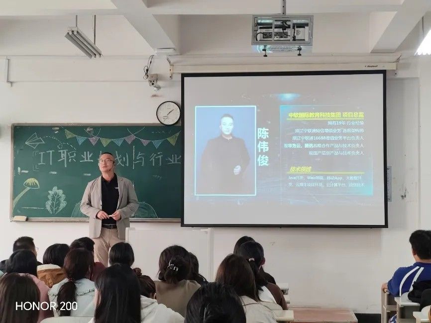 为了帮助同学们精准把握行业要求,清晰定位职业方向和目标,学院组织召开了“职业规划与行业认知”专题讲座,讲座由中软国际教育集团项目总监陈伟俊主讲,2024级全体学生参加。陈伟俊围绕“我的青春我做主”的主题,深刻剖析了科技发展对IT行业的影响,并通过一系列大数据应用的经典案例,生动地展示了移动互联时代IT职业岗位的多样性和发展前景。