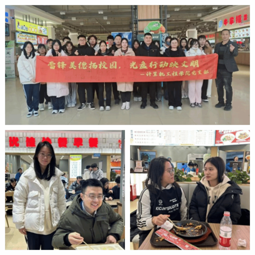 党支部特举办“雷锋美德扬校园,光盘行动映文明”活动,旨在弘扬雷锋精神,推进校园文明建设。参与者在食堂开展志愿服务,参与光盘行动签字,并拍摄“光盘”合影,以实际行动倡导勤俭节约的雷锋精神,号召大家将宝贵的雷锋精神和节约风尚内化于心,共筑和谐校园环境。