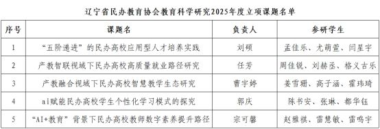 我院5项课题获批辽宁省民办教育协会2025年度立项课题