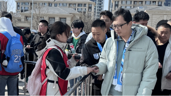 第二组志愿者提供赛事秩序维护以及观赛引导服务。通过初检的观众随即进入内场入口处,志愿者们对其进行复检工作,确保观众们有序的到达指定的区域。他们的热忱奉献精神和辛勤付出获得了现场观众的一致好评。