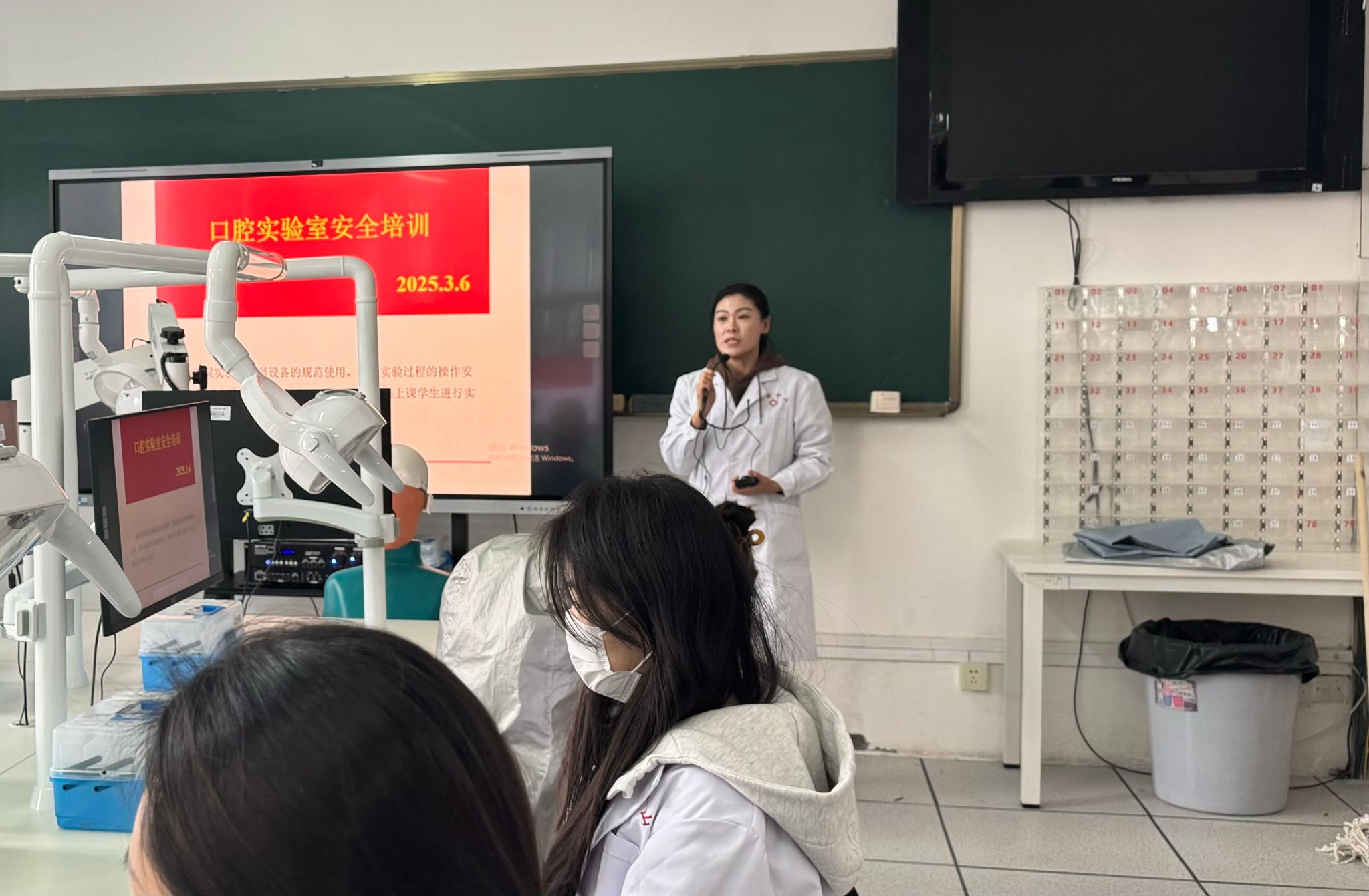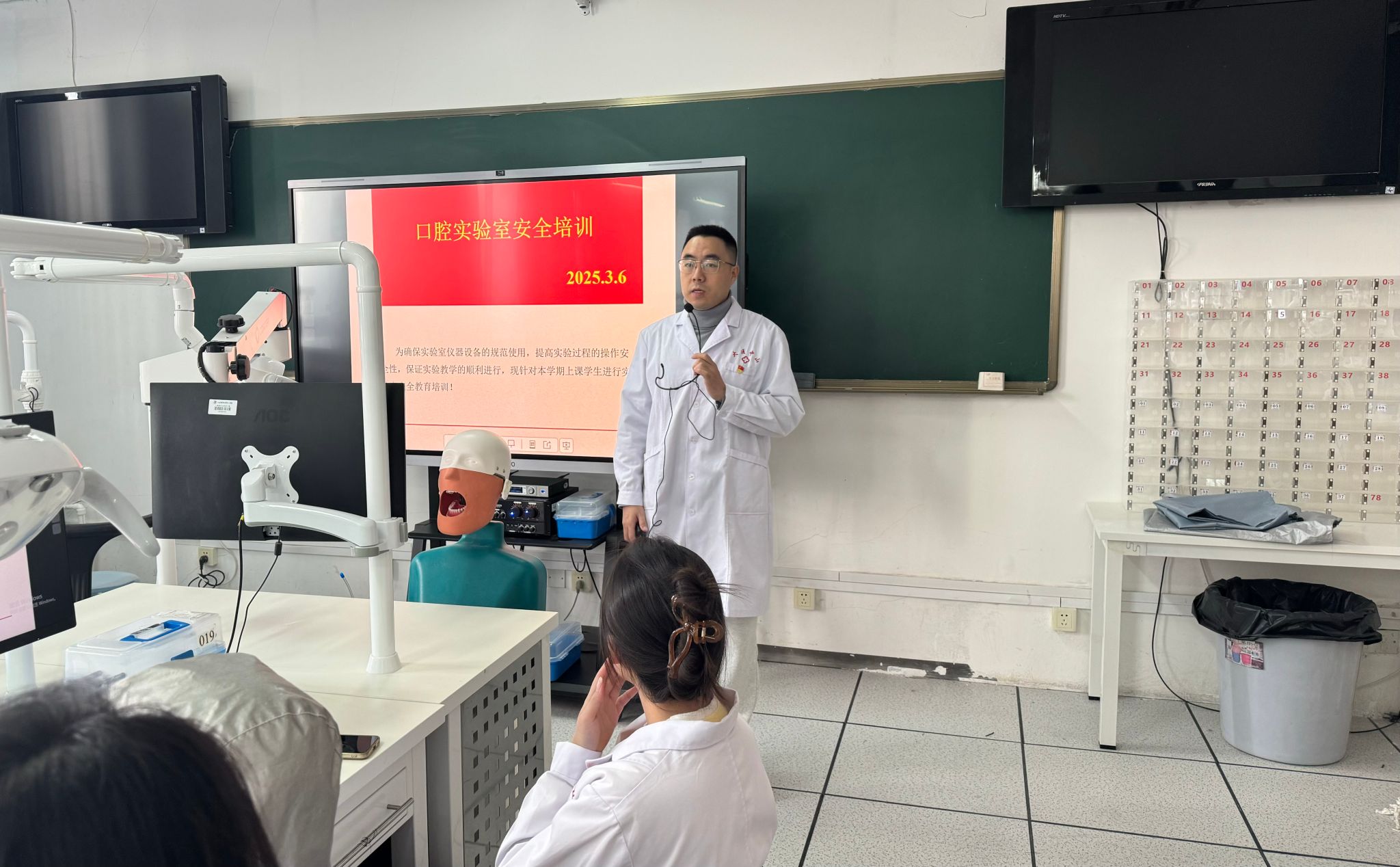 新学期伊始,根据口腔医学专业教学进程,2022级学生即将接触新的专业实验课程,为切实保障实验课教学工作的顺利开展,确保实验操作过程中师生生命财产、教学仪器设备安全,口腔医学院于3月6日13:00-16:00在实验教学楼口腔内科学实验室举办2025年春季学期口腔实验室安全教育培训会。口腔医学院相关专业课教师及2022级全体同学参加本次安全教育培训,姜龙和季秋实老师分别主持会议。