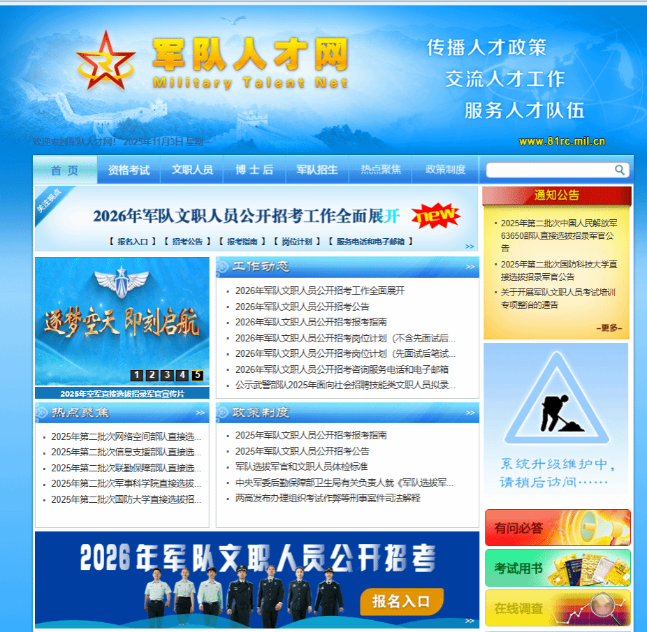 2026年军队文职人员公开招考工作官方网站:http://81rc.81.cn