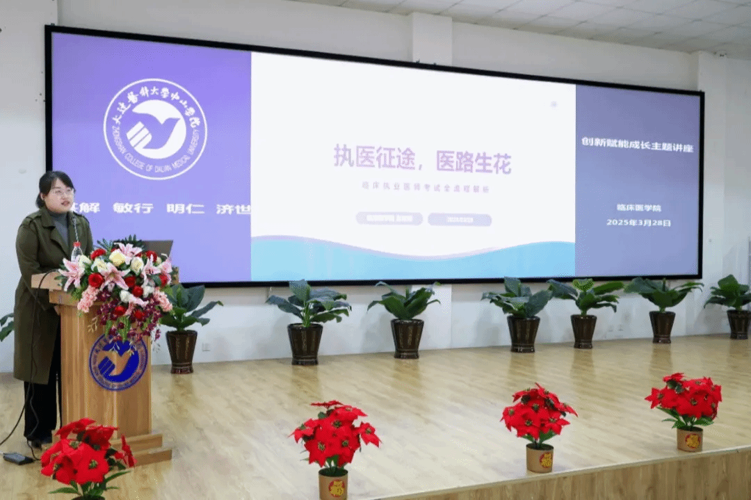 为深入贯彻落实《国务院办公厅关于加快医学教育创新发展的指导意见》及《“健康中国2030”规划纲要》文件精神,3月28日,临床医学院举办“创新赋能成长”学业规划讲座。本次讲座特邀灯塔市中心医院副院长张玲与学院教师张紫薇联袂开讲,300余名师生齐聚学术报告厅共话医者成长之路。