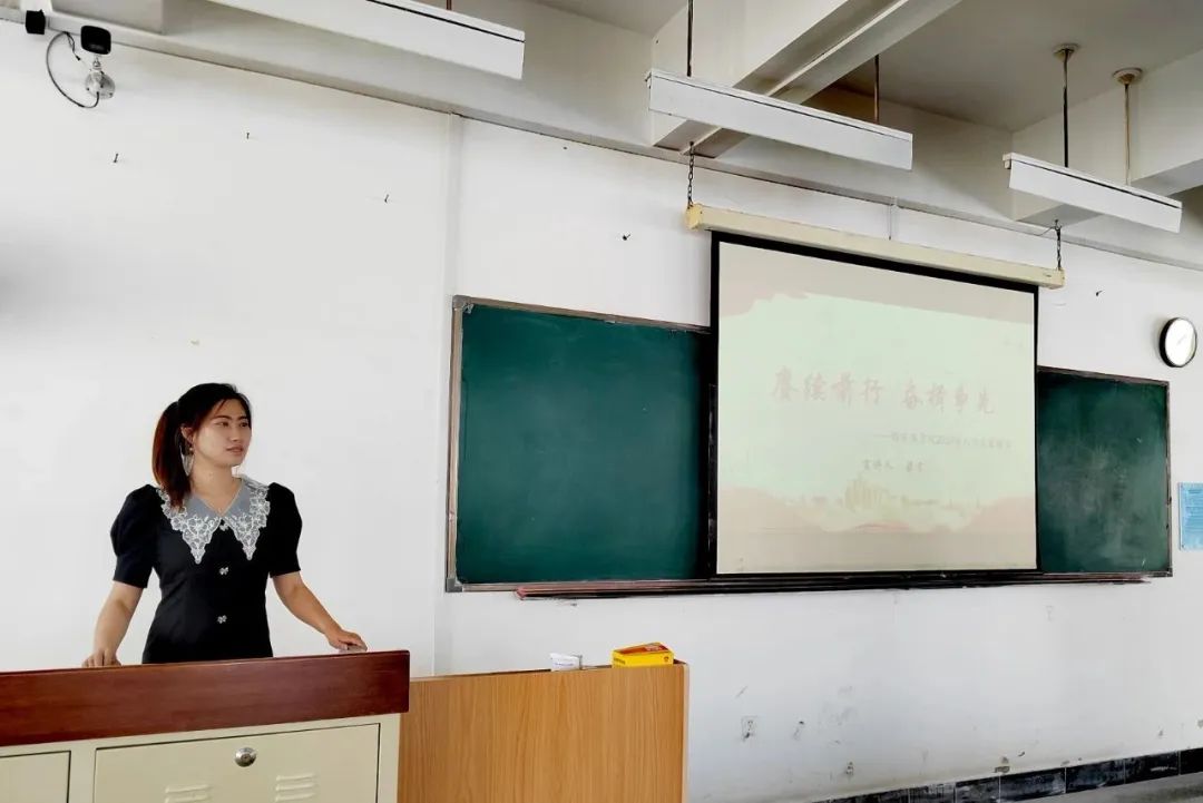 梁言老师以“赓续前行,奋楫争光”为题,从大学生思想政治要求、共青团组织架构、团组织的宗旨、入团基本条件、入团流程以及入团志愿书规范撰写要求等方面展开讲述,梁言老师表示新时代青年应该胸怀报国之志,为实现强国梦想脚踏实地,为祖国建设发光发热。