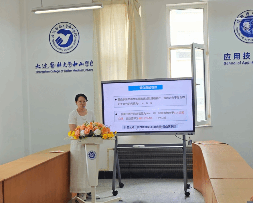 此后,孙栢雪围绕“蛋白质测定的基本原理与方法”,系统介绍了凯氏定氮法、双缩脲法、紫外分光光度法等常用技术的操作要点与适用场景。她通过真实案例导入,将抽象检验流程还原为生动易懂的教学情境,有效增强了课程内容的实用性和吸引力。