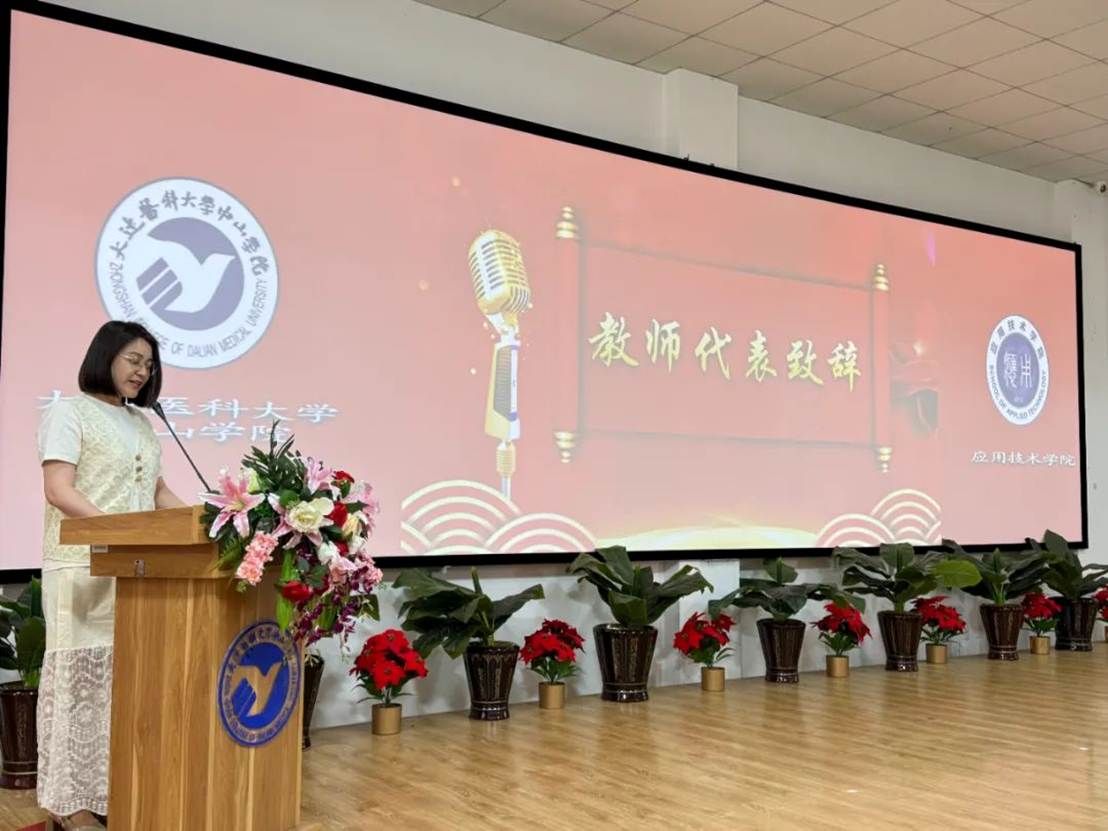 大会第二项,教师代表宋利华上台致辞。她表示,医学不仅是知识的积累与技术的锤炼,更是责任、担当与仁爱的体现。希望同学们无论身处何地、身居何职,都要铭记“甚解、敏行、明仁、济世”的校训,在理解中积累真知,在行动中追求实效;以仁心仁术待人处事,以济世情怀服务社会。愿大家不负时代、不负青春,勇敢奔赴属于自己的光明未来。