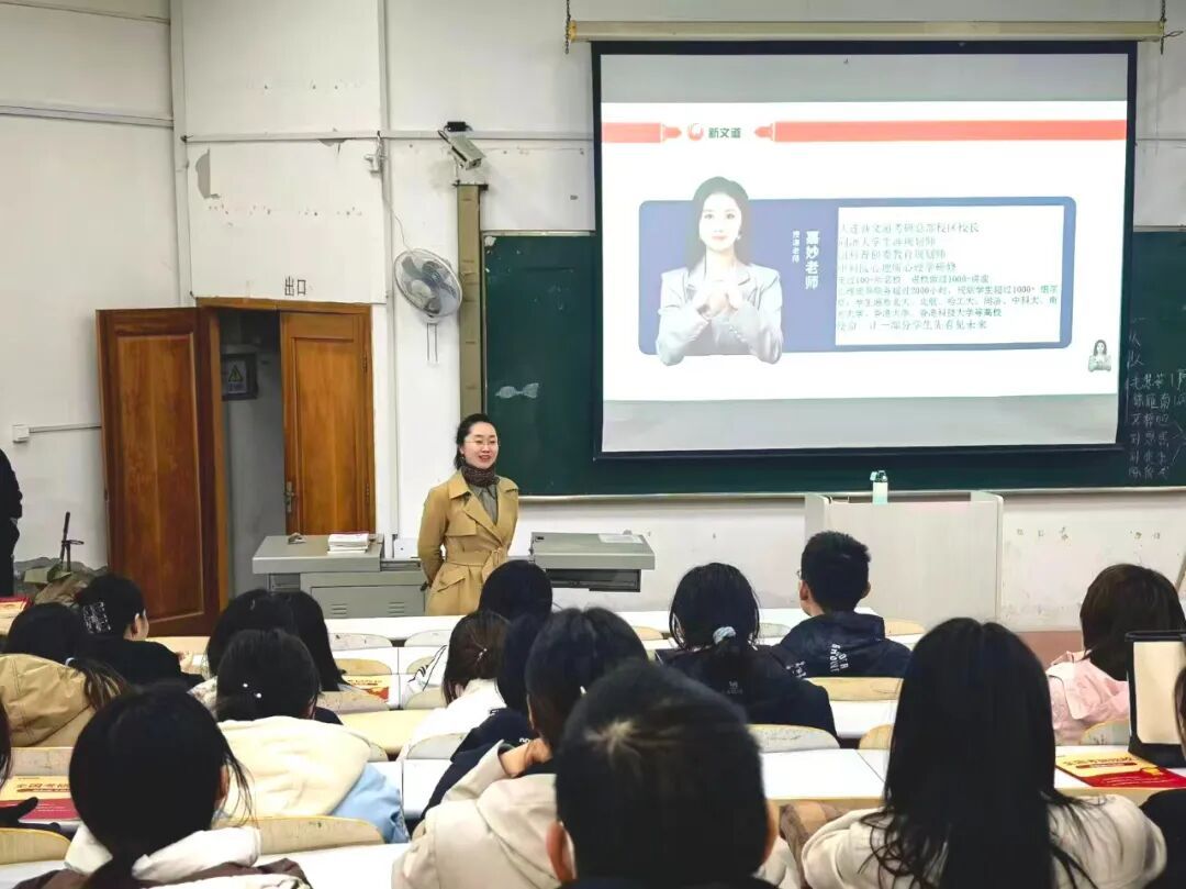 为精准对接学生成长需求、切实解决学生考研备考“方向惑”“方法难”等问题,我院于10月27日晚6时40分在实验教学楼第七阶梯教室成功举办“研途有方,规划先行”考研规划专题讲座。本次讲座由大连新文道考研总部校区校长曹嘉妙老师主讲,我院2024级全体学生参加。