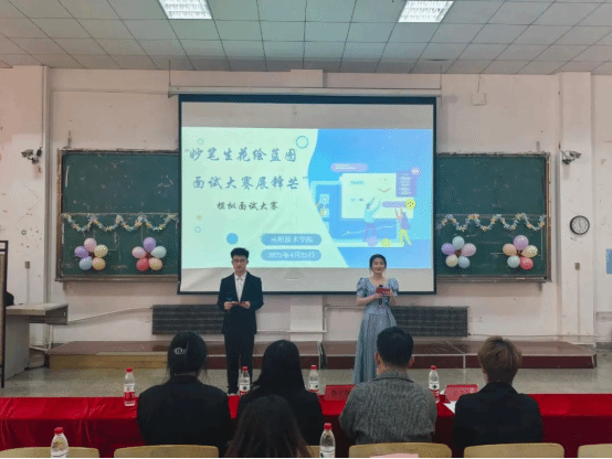 为助力应用技术学院学子提前熟悉求职战场,锤炼职场竞争力,我院于2025年4月25日17时在第二教学楼十三阶梯举办“妙笔生花绘蓝图,面试大赛展锋芒”模拟面试大赛。本次活动由团总支书记邬晶新、辅导员郭宇剑及轮值主席宋佳怡、刘子轩担任评委,各年级部分同学参加。