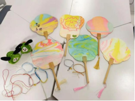 活动伊始,现场早已布置得充满端午氛围,各类制作材料整齐摆放,等待同学们大展身手。本次活动精心设置了漆扇DIY、扭扭棒小粽子制作以及五彩绳编织三大特色项目。在漆扇DIY区域,同学们手持空白扇面,或勾勒端午元素图案,或书写端午诗词,色彩在扇面间晕染,将传统与创意巧妙融合;扭扭棒小粽子制作区域,一根根色彩斑斓的扭扭棒在同学们手中翻转、缠绕,不一会儿,一个个形态各异、憨态可掬的小粽子便诞生了,可爱模样让人忍俊不禁;五彩绳编织区同样热闹非凡,同学们将五种颜色的丝线交织缠绕,在手中穿梭,编织出象征吉祥如意的五彩绳,每一根都饱含着对美好生活的向往。