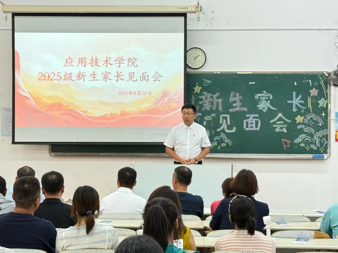 13:30,家长见面会正式开启。院长陈驰以“学校与学院的发展底色”为主题,介绍了学校的办学理念、校园文化与优质教学资源,让家长们对孩子求学的“大环境”有了清晰认知。副院长胡娜娜聚焦“专业学习与未来发展”,清晰说明不同阶段的学习重点,同时结合行业需求与就业数据,介绍学院的实习合作单位、技能认证支持及就业指导服务,让家长们直观了解孩子的专业前景与成长路径。辅导员老师邬晶新从“思想引领与日常管理”双维度分享,坚持以严管厚爱的态度,关注每一位新生的适应情况,让家长们放心托付。