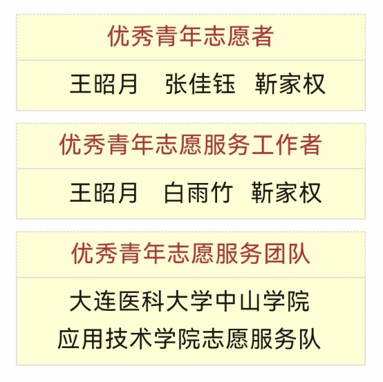 为贯彻落实习近平总书记关于青年工作、志愿服务的重要思想与指示批示精神,发挥先进典型示范引领作用,加强对广大青年的政治引领,激励和引导广大青年志愿者弘扬志愿精神、投身强国建设,应用技术学院动员学生积极参加志愿服务活动,并在2024年“争做争创新时代大连萤火虫志愿服务总队优秀青年志愿者、优秀青年志愿服务工作者及优秀青年志愿服务团队”主题活动中取得多项荣誉。其中,我院3名学生被评为大连萤火虫志愿服务总队优秀青年志愿者,3名学生被评选为大连萤火虫志愿服务总队优秀青年志愿服务工作者,我院志愿服务队被评选为大连萤火虫志愿服务总队优秀青年志愿服务团队。