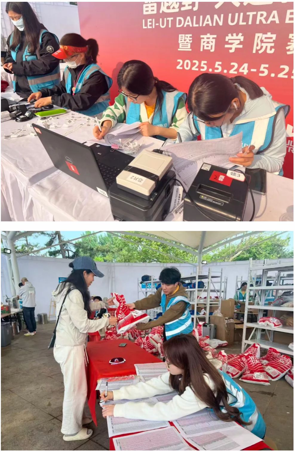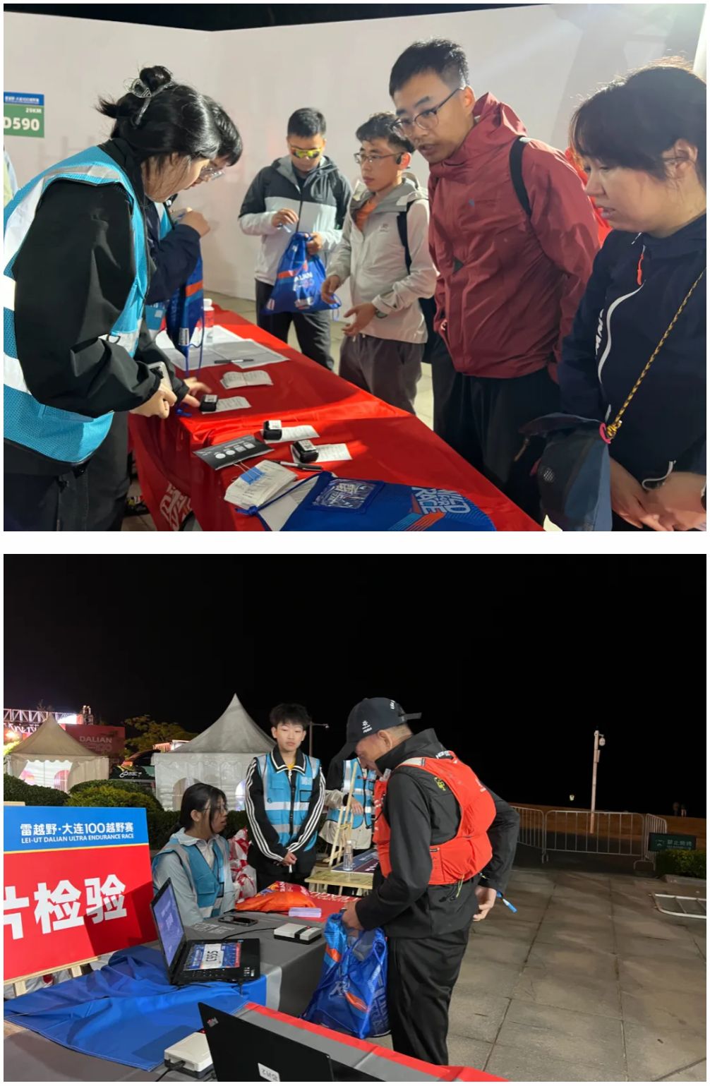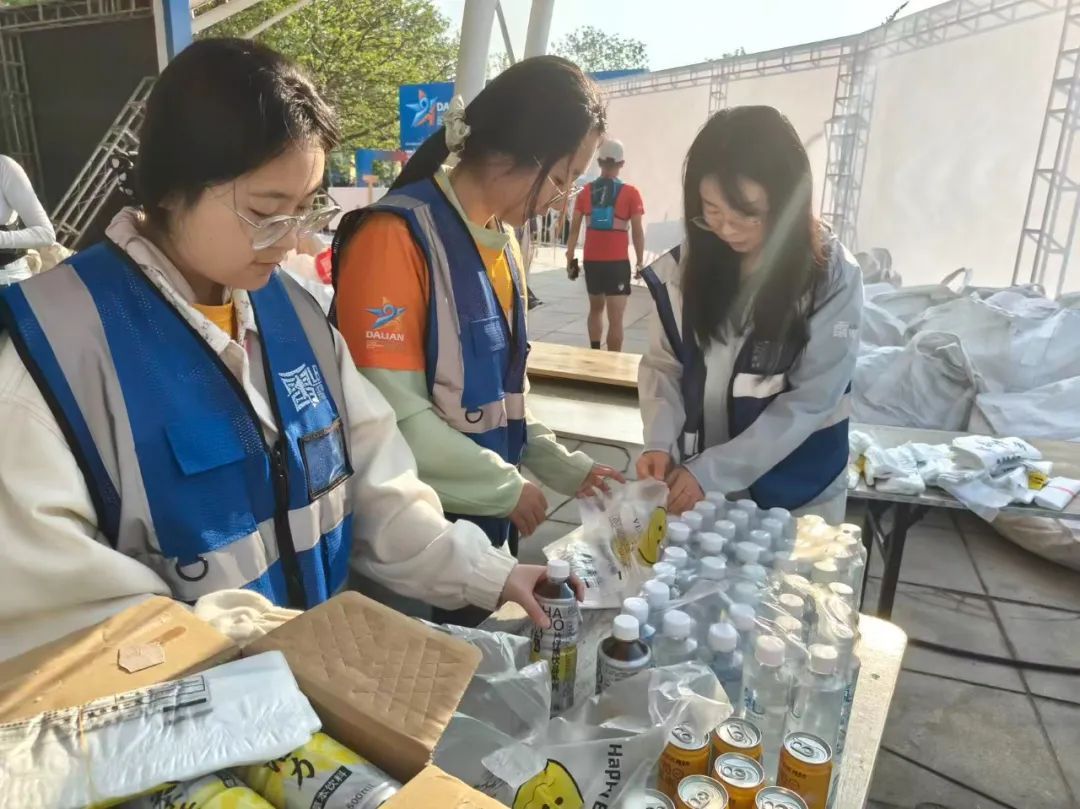 5月23日早8:30,晨光微熹,首批志愿者已在带队老师的组织下集结完毕,奔赴傅家庄公园,正式开启助力大连100越野赛的志愿服务征程。直至当晚9:30,13个小时的持续奋战里,志愿者们全力投入到赛事筹备工作中。在物资领取处,他们耐心细致地协助选手核对信息、领取物资;寄存物品区域,每一件物品都被妥善安置,为赛事的顺利启动筑牢根基。