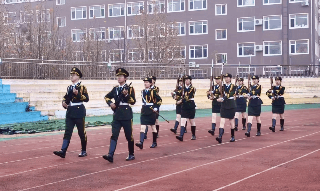 晨曦微露,绿茵场浸润着朦胧的清辉。清晨七时,国旗护卫队成员身着正装,身姿挺拔,护卫国旗稳步前行。