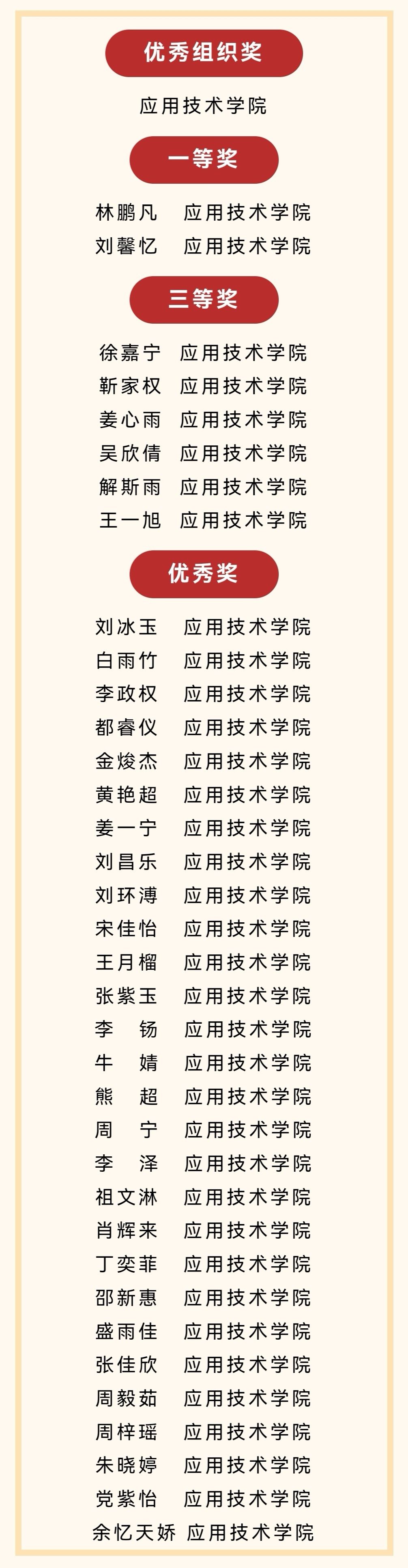 此次赛事取得佳绩,是我院深耕 “以赛促学、以赛促教、以赛促就”育人模式的生动注脚,彰显了我院在职业素养培育与就业能力提升方面的扎实成效。未来,我院将持续优化就业指导服务体系,搭建更多优质实践平台,助力我院学子在人生赛道上乘风破浪、绽放光彩!