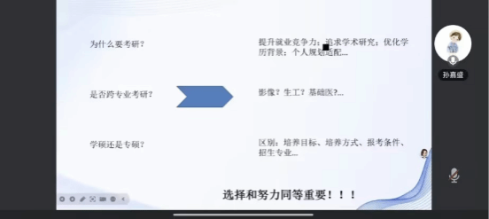 为营造优良考研氛围,搭建同辈交流桥梁,让学子汲取备考动力,明晰努力方向。应用技术学院于2025年11月5日19时在腾讯会议召开“研路同行,薪火相传”考研经验交流分享会。出席本次活动的有应用技术学院辅导员郭宇剑老师、我院2022级、2023级部分学生。本次分享考研经验的是来自beat365唯一官方网站医学技术专业的研究生——孙盛嘉学长。